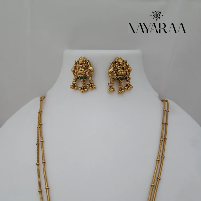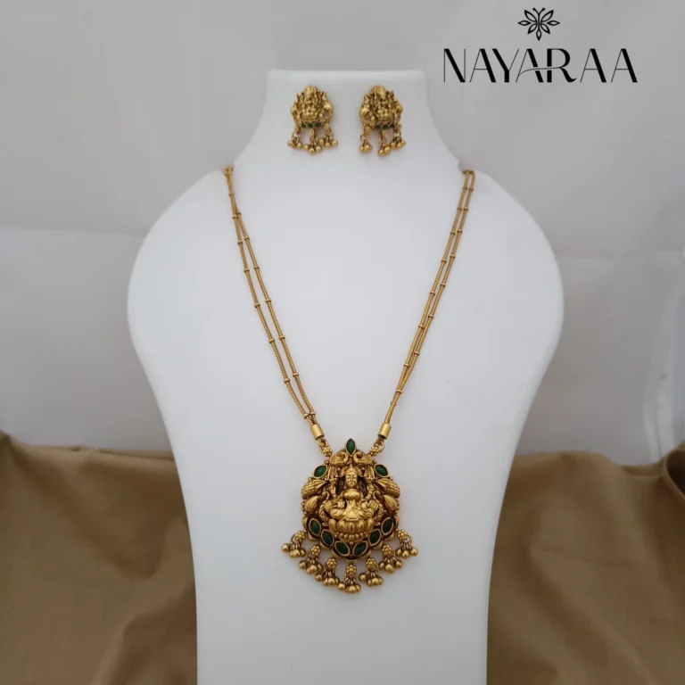 Step into the radiance of a classic era with this magnificent piece of traditional Indian jewellery. Expertly designed, this piece evokes the spirit of South Indian antique necklace collections. Therefore, it is the ultimate statement for those seeking bridal jewelry with a rich heritage aesthetic. Moreover, its detailed craftsmanship makes it an essential addition to any festive or wedding ensemble.