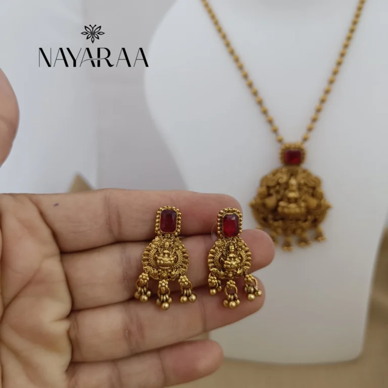 Step into the radiance of a classic era with this magnificent piece of traditional Indian jewellery. Expertly designed, this piece evokes the spirit of South Indian antique necklace collections. Therefore, it is the ultimate statement for those seeking bridal jewelry with a rich heritage aesthetic. Moreover, its detailed craftsmanship makes it an essential addition to any festive or wedding ensemble.