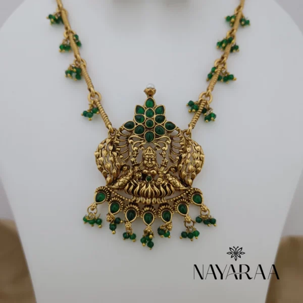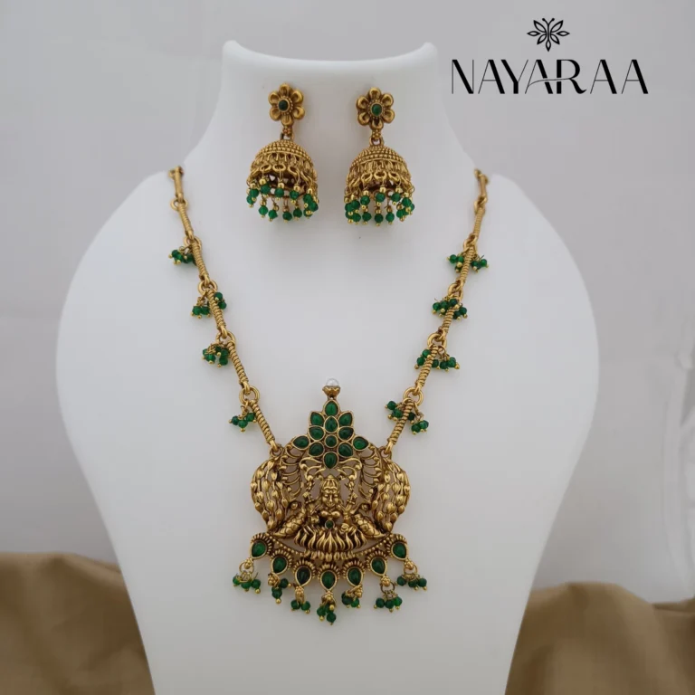 Step into the radiance of a classic era with this magnificent piece of traditional Indian jewellery. Expertly designed, this piece evokes the spirit of South Indian antique necklace collections. Therefore, it is the ultimate statement for those seeking bridal jewelry with a rich heritage aesthetic. Moreover, its detailed craftsmanship makes it an essential addition to any festive or wedding ensemble.