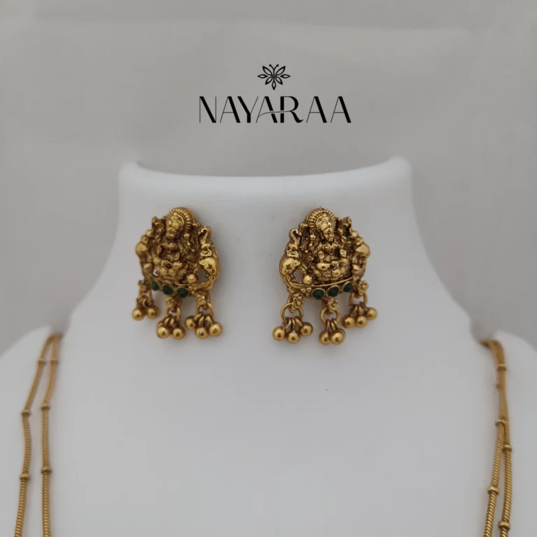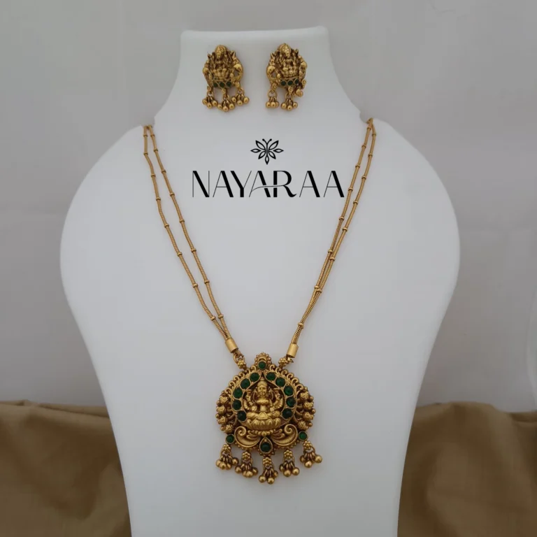 Step into the radiance of a classic era with this magnificent piece of traditional Indian jewellery. Expertly designed, this piece evokes the spirit of South Indian antique necklace collections. Therefore, it is the ultimate statement for those seeking bridal jewelry with a rich heritage aesthetic. Moreover, its detailed craftsmanship makes it an essential addition to any festive or wedding ensemble.