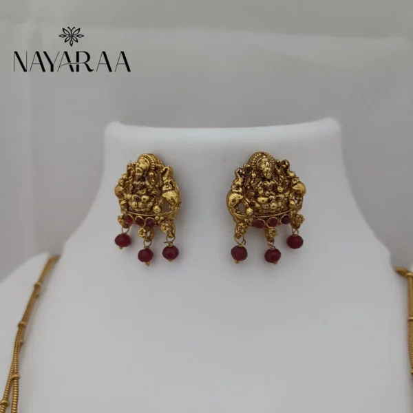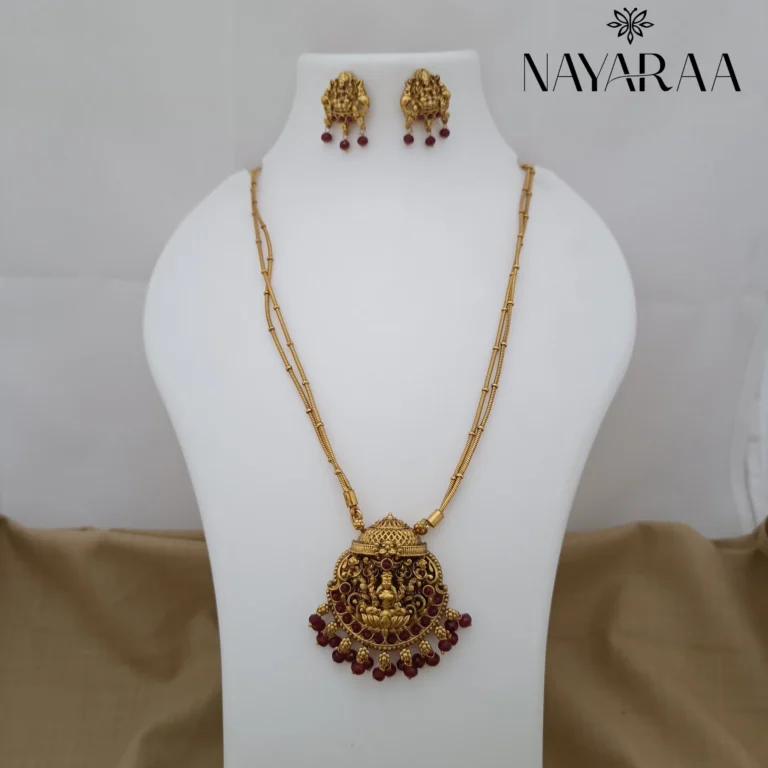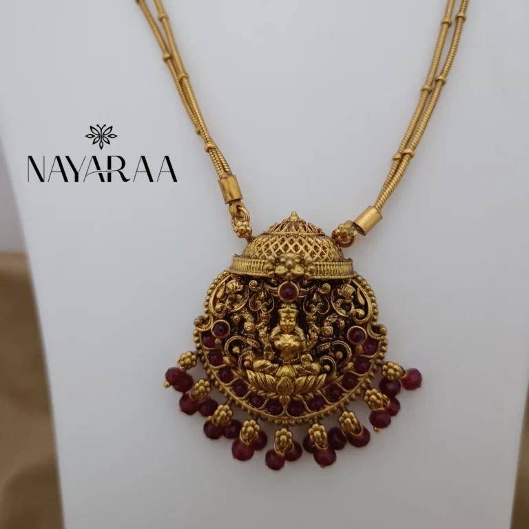 Step into the radiance of a classic era with this magnificent piece of traditional Indian jewellery. Expertly designed, this piece evokes the spirit of South Indian antique necklace collections. Therefore, it is the ultimate statement for those seeking bridal jewelry with a rich heritage aesthetic. Moreover, its detailed craftsmanship makes it an essential addition to any festive or wedding ensemble.