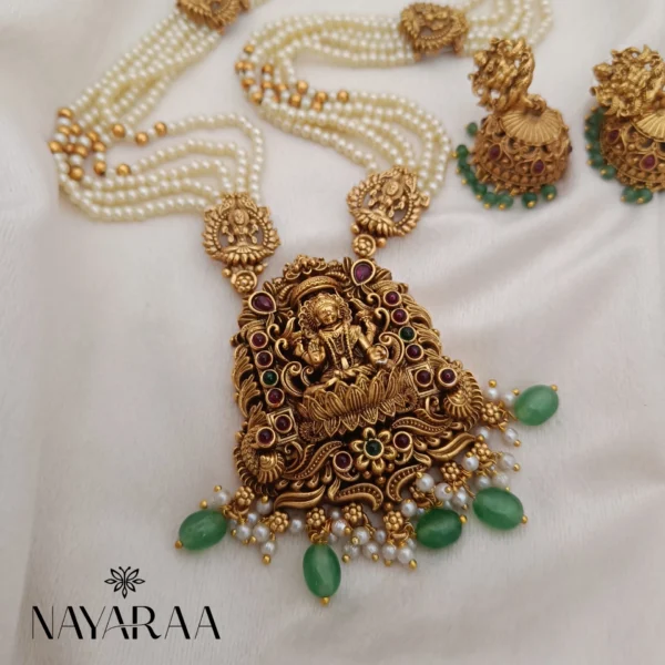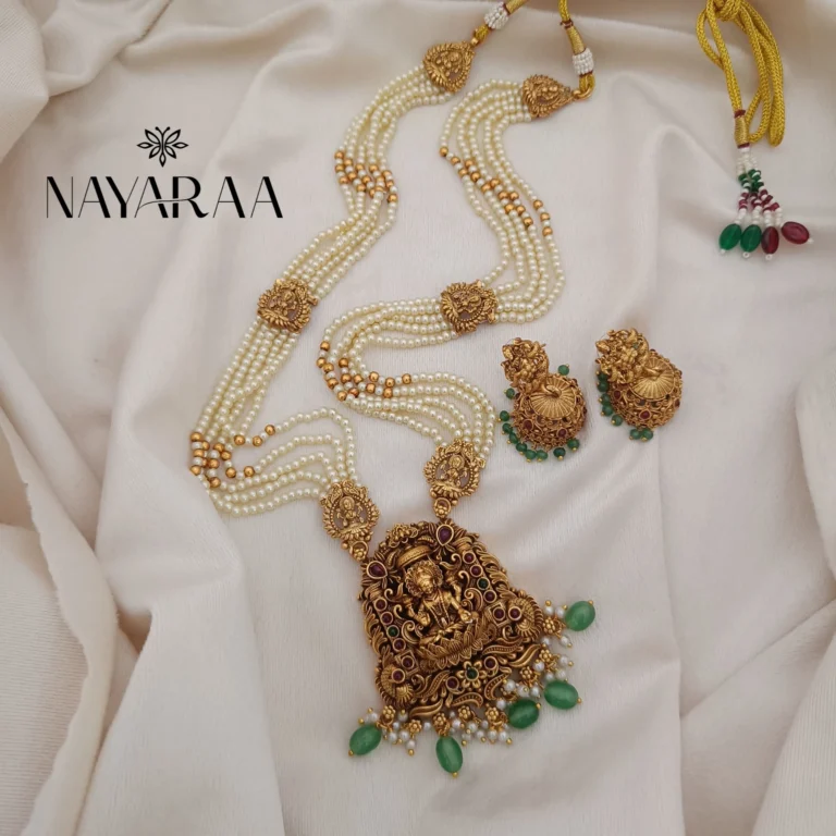 Step into the radiance of a classic era with this magnificent piece of traditional Indian jewellery. Expertly designed, this piece evokes the spirit of South Indian antique necklace collections. Therefore, it is the ultimate statement for those seeking bridal jewelry with a rich heritage aesthetic. Moreover, its detailed craftsmanship makes it an essential addition to any festive or wedding ensemble.